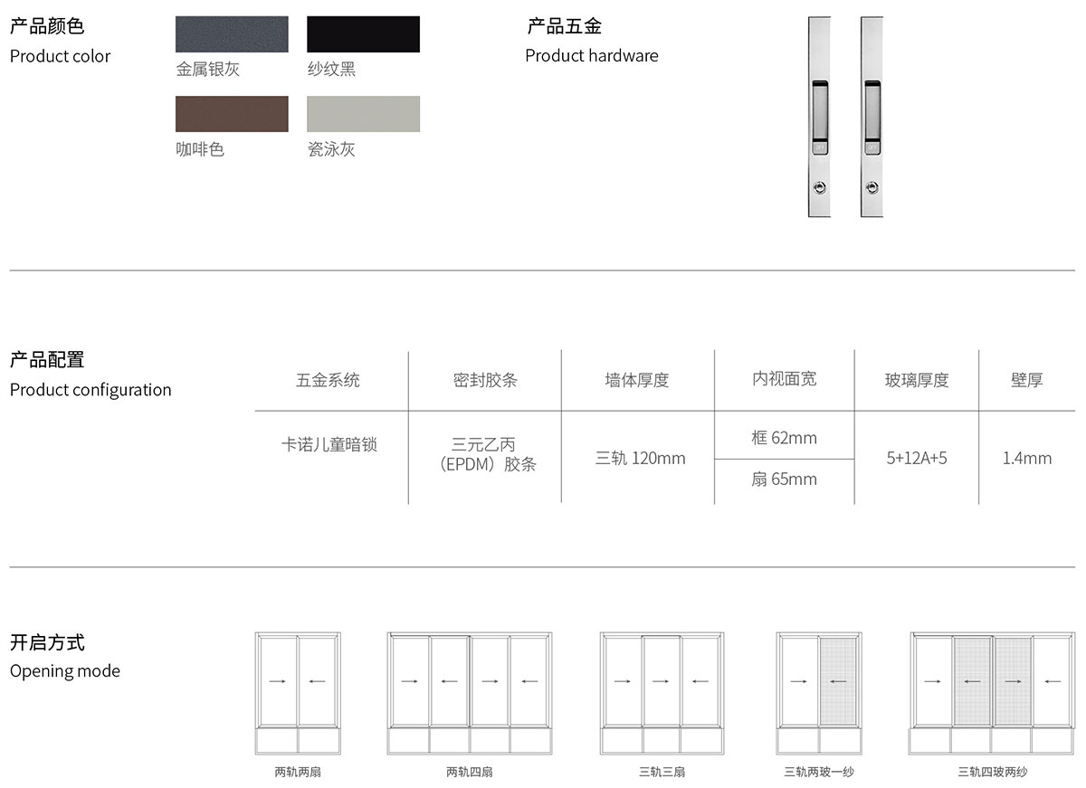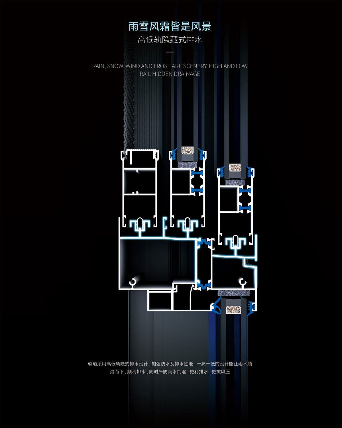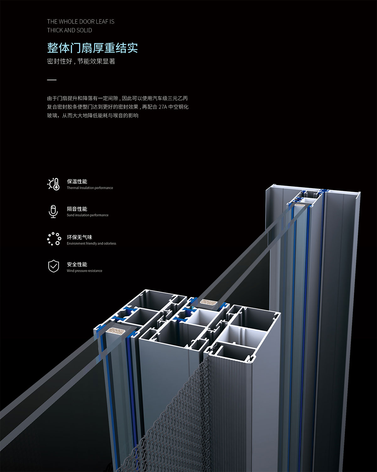 - 采用隔熱斷橋鋁型材,具有隔音、防噪、防水、節能等功能。
